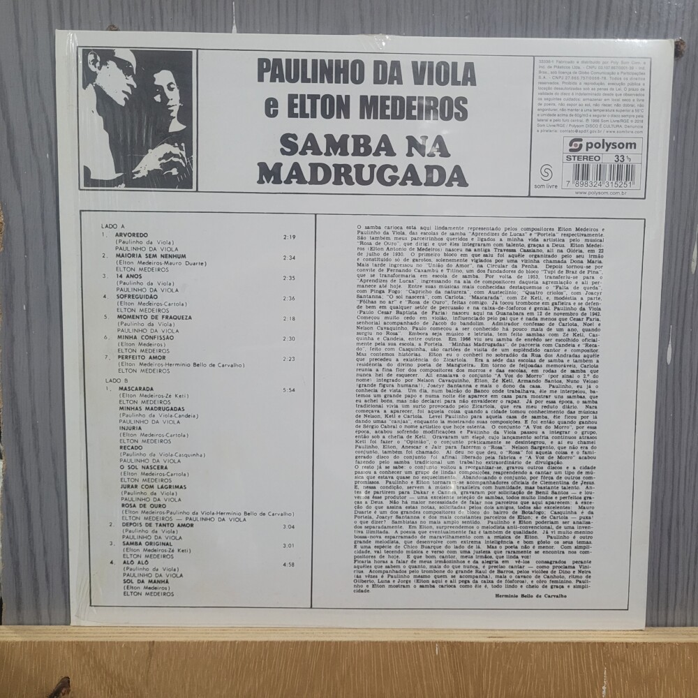 Paulinho Da Viola/Elton Medeiros - Samba Na Madrugada (LP Nacional) quantidade